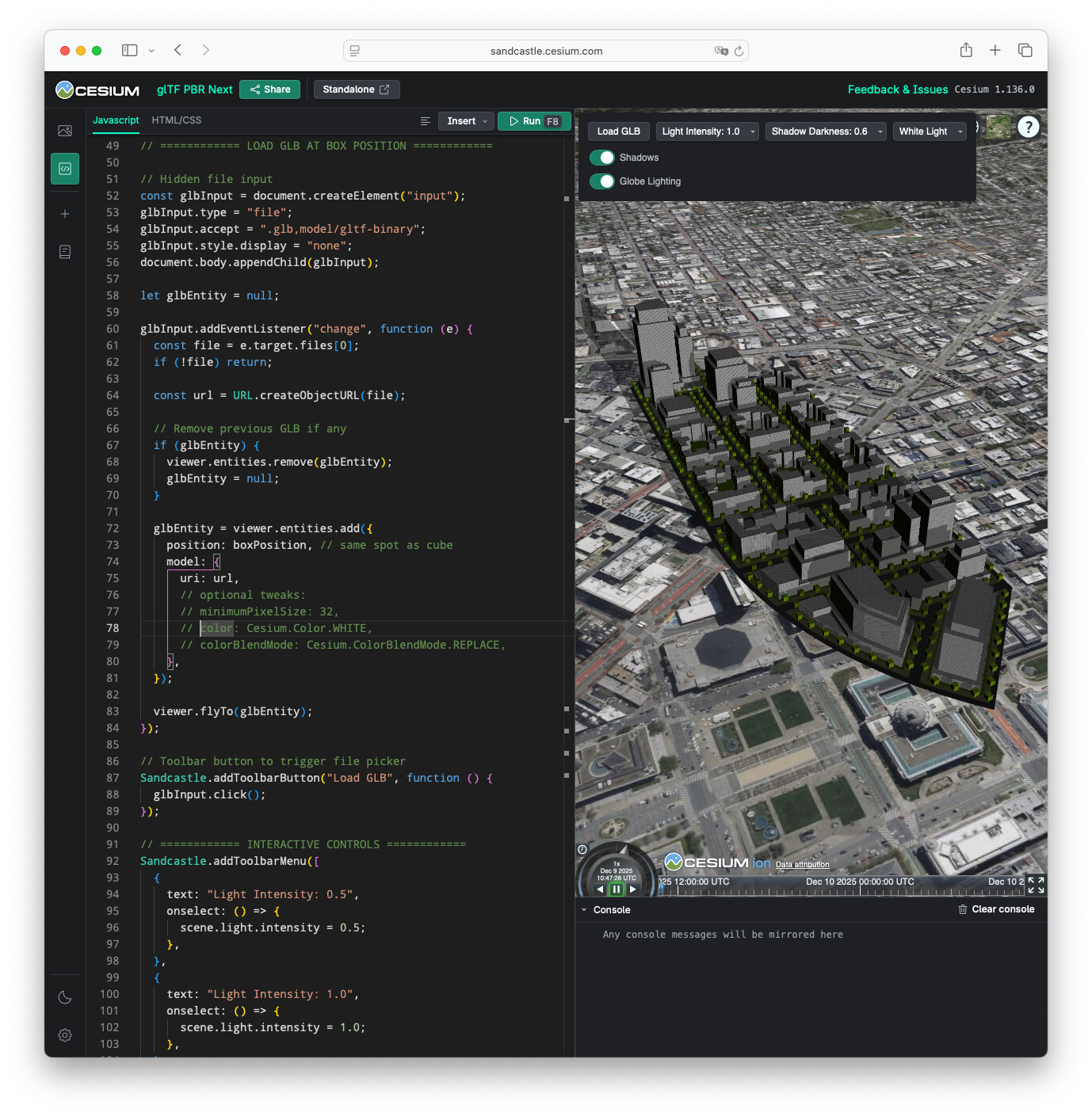 But can’t find a clean way to transfer a full geometry programatically? I think I need to find a way to provide glTF model?