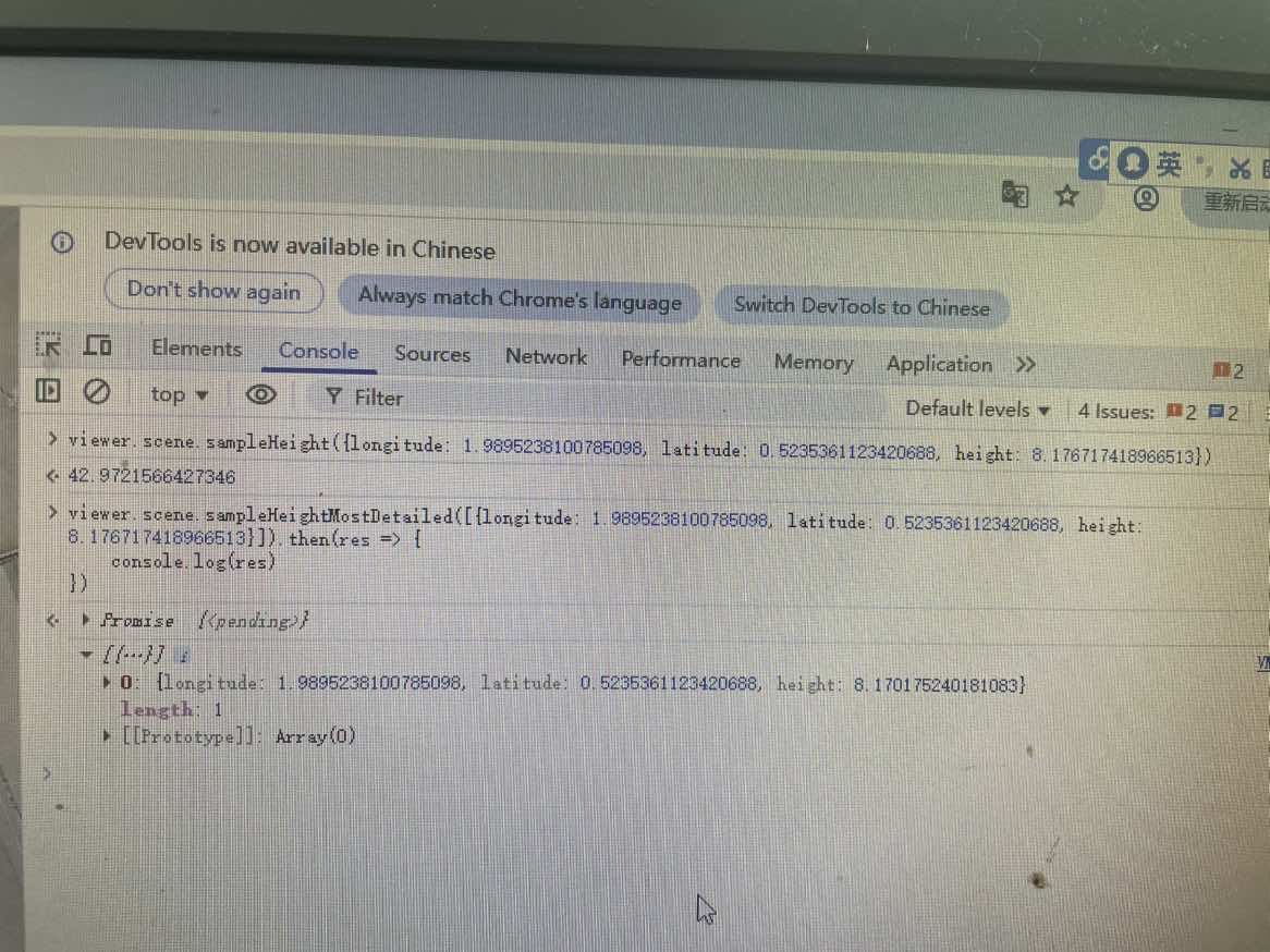 I added a 3D Tileset model at this location, and when I used these two methods to get the model’s height at the same coordinate point, the two methods returned different heights.